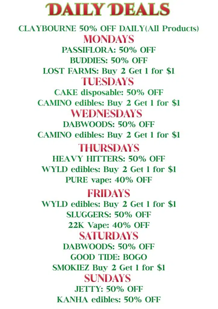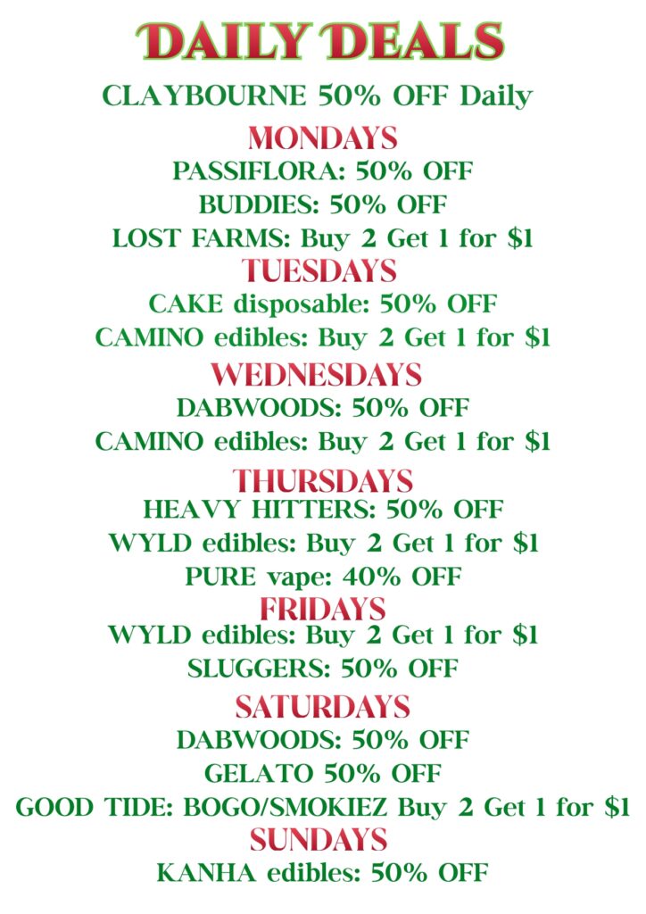 Take advantage of our weekly specials and exclusive offers, including discounts on top products, bundle deals, and limited-time promotions to help you get the most out of your cannabis experience.